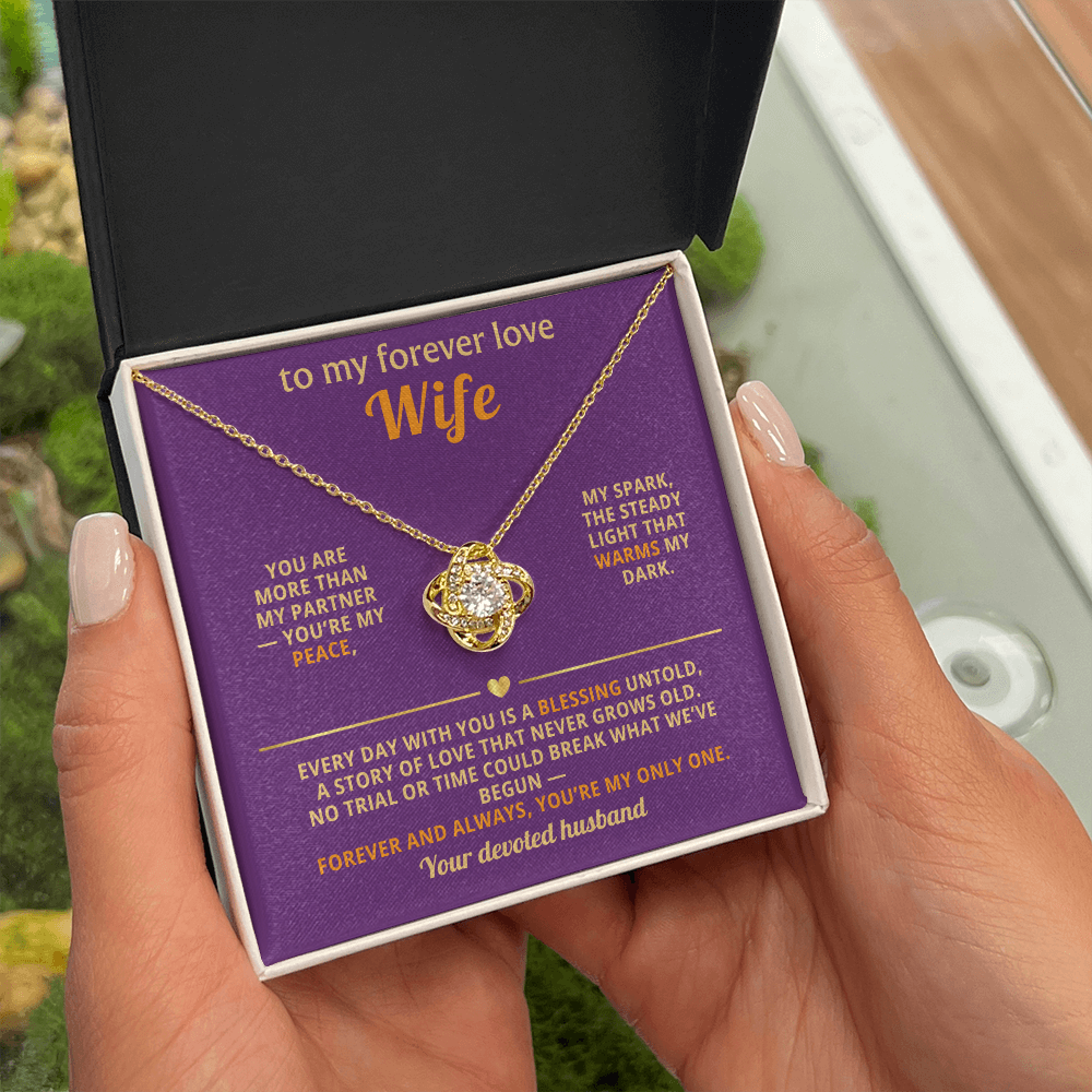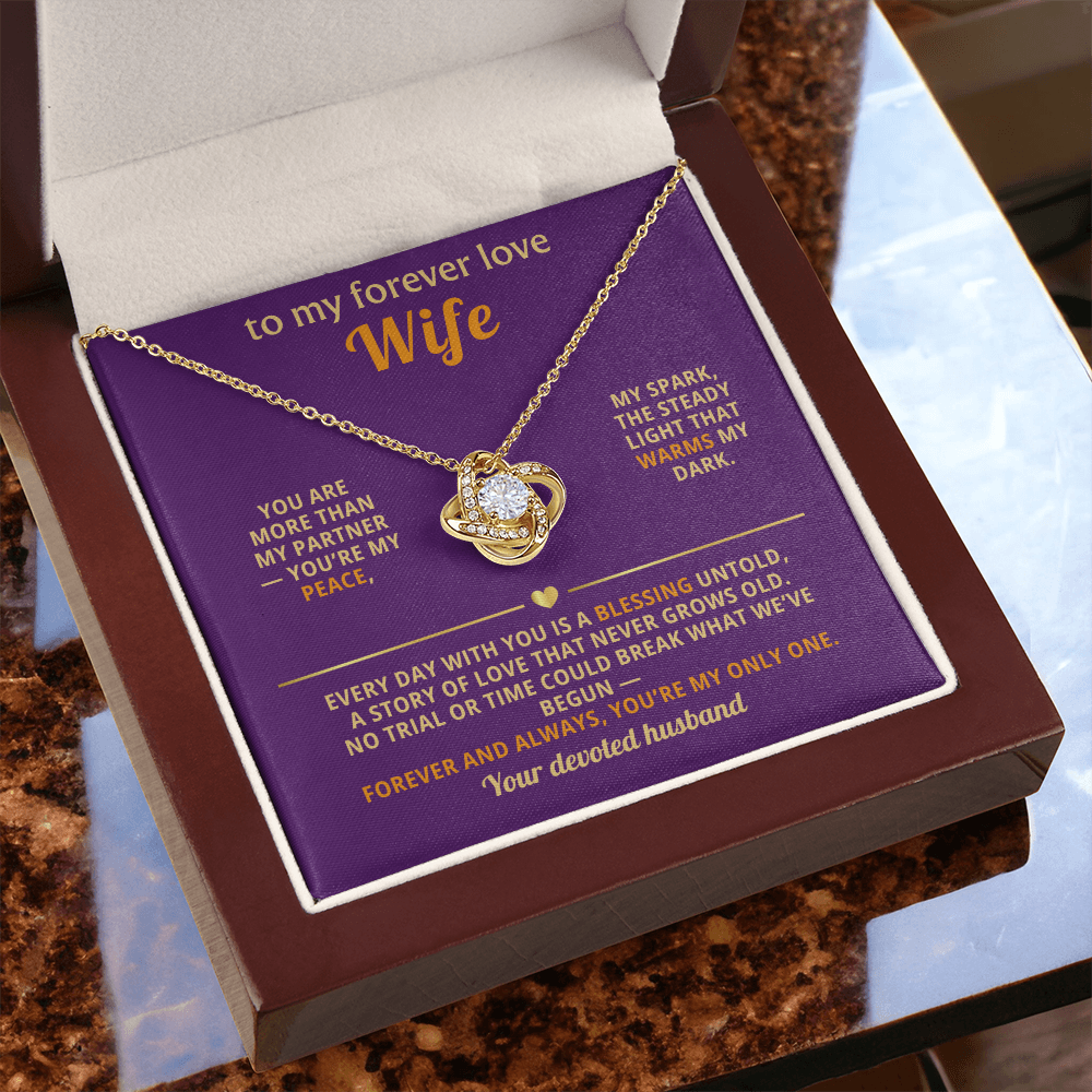 Forever Love Wife Necklace - Love Knot Pendant with CZ Crystal | Romantic Gift from Husband